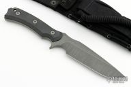 This Repercussion 2023 by Ramon Chaves features a dark stonewash finished blade with .258" blade stock and 1.594" blade depth, full tang construction with black canvas micarta scales. Comes with a black nylon Spec-Ops Brand sheath. New from maker. Comes with zippered case and COA. #01.