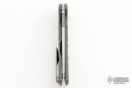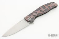 This F95RT by Shirogorov Knives features a stonewashed blade with a notched thumbrest and flipper. The handle has a two-tone milled titanium frame with matching titanium backspacer and tip up clip. Nice detent, lockup and blade seating. Has MRBS. Comes with original box and COA. Excellent condition.