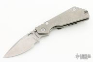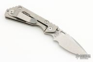 This PT by Mick Strider features a stonewashed blade with notched thumbrest and thumbhole. The handle has a stonewash titanium frame with matching tip up clip. New from Maker!