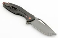This Arius by Koenig knives features a black blade with thumbhole and flipper. The handle has a nicely milled titanium frame with a titanium tip up clip, titanium backspacer. Has ceramic bearings and a ceramic detent ball. Nice detent, lockup and blade seating. Comes with original box and COA Dated May 12, 2023. New from Maker!