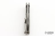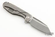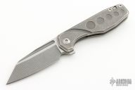 This Silvera by Jason Stout features a milled wharncliffe blade with fullers and flipper tab. The handle has a milled and tumbled titanium frame with a matching titanium tip up clip. Barrel spacers, and satin finish pivot. Comes with a velcro sheath and COA. Nice detent, lockup and blade seating. New from maker at the 2023 Blade Show Atlanta.