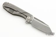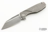 This Silvera by Jason Stout features a milled wharncliffe blade with fullers and flipper tab. The handle has a milled and tumbled titanium frame with a matching titanium tip up clip. Barrel spacers, and satin finish pivot. Comes with a velcro sheath and COA. Nice detent, lockup and blade seating. New from maker at the 2023 Blade Show Atlanta.