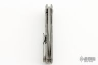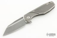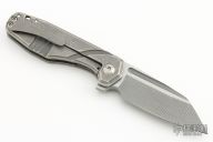 This Silvera by Jason Stout features a milled wharncliffe blade with fullers and flipper tab. The handle has a milled and tumbled titanium frame with a matching titanium tip up clip. Barrel spacers, and satin finish pivot. Comes with a velcro sheath and COA. Nice detent, lockup and blade seating. New from maker at the 2023 Blade Show Atlanta.