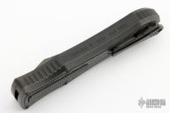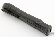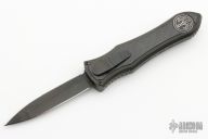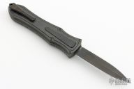This knife is a Deadlock Model C by Grant and Gavin Hawk. It has a double-edged black blade. The handle has a Carbon Fiber inlays in the black titanium frame with a tip down spring clip, titanium. The thumb slide on the handle is also titanium and handle has a titanium overlay. Comes with a cloth pouch. Grant and Gavin Hawk set out to create a double action OTF with no blade play.... They did it, NO blade play. Comes with tool, cloth pouch. New from maker!