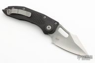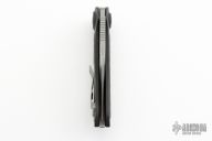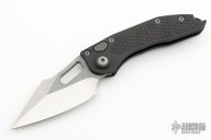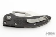 This Stitch Auto by Microtech Knives features a stonewash finished blade and false top edge, notched thumb and finger rests. The handle has a black milled aluminum handle with a bead blasted titanium backspacer and a bead blasted stainless steel clip, tip up carry, lanyard hole at the butt. Reground by Danny Yard. Excellent condition.