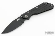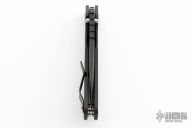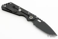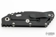 This Mick Strider Performance Series SMF framelock folder features a spear point black blade with thumbhole and notched thumbrest. The handle has a black titanium frame with titanium clip, tip up carry. Jimping on blade spine. Includes Hinderer "Lock Bar Stabilizer" for maximum reverse lock retention. Nice detent, lockup and blade seating. Excellent condition.