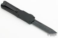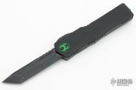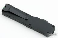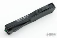 This Colossus OTF from Heretic is the Blade Show 2023 special. Magnacut Tanto blade with notched thumbrest. Slab side chassis with hand-filled deep engraved logo. Ball Bearing Glassbreaker with green accent ring. Battleworn finish on the Thumbslide. Box and OTF lube included. Excellent Condition, new from maker 2023 Blade Show