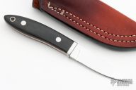 I have been making knives since 1992 and have concentrated on Loveless style knives since buying the book "How To Make Knives" early in my knife making. Over the years I have worked hard to improve the fit and finish of the knives that I make and I hope to continue to improve. In the years to come I hope to come up with new designs and start making a few folding knives. I would like to thank Steve Johnson and Mike Lovett for their willingness to share their knife making knowledge. I have been using CPM-154 for my main blade steel the last couple of years. I like the way it finishes and it makes a fine knife. I entrust Paul Bos with the heat treatment of my knives. Paul heat treats my CPM-154 blades to 60-61 RC. The standard Vestal knife will have a stainless guard or bolsters and stainless bolts or pins. I like to use natural handle materials for the handle scales but if your knife is going to see hard use, I will be glad to put Micarta or another synthetic on the knife.