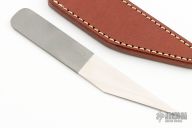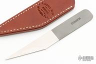 This Kiridashi style "tailor's" knife by Randall Made Knives features a satin finished blade with .112" blade stock and .835" blade depth. Non-catalog Randall item. Comes with a brown leather slip sheath. Hard to find. Excellent condition.