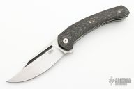 This Sparrow Flipper by Emmanuel Le Brun features a satin finished blade with fullers and flipper tab. The handle has snake skin carbon fiber scales, titanium liners and a Zicuti tip up pocket clip. Carbon fiber backspcaer.  Nice detent, lock up and blade seating.  Includes a padded zippered case and COA.  New from maker!