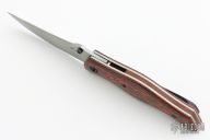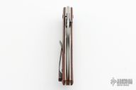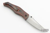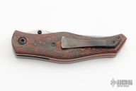 This Roxanne Linerlock from Jason "Gatorbud" Smith features a bead blast finished blade with sedge and an anodized titanium thumbstud. The handle has Mars Valley Fat Carbon scales, orange peel finished titanium liners, anodized titanium hardware, orange/black G-10 backspacer, and an orange peel finished and anodized tip up clip. Nice detent, lockup and blade seating. New from maker at the 2023 Blade Show. Comes with COA dated 6-1-23 and #70