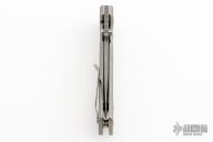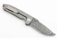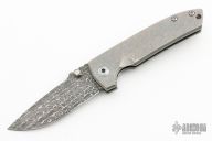 This Project VECP by Les George features a Damascus blade and a stonewashed titanium frame with matching tip up clip. Hinderer lock bar stabilizer. Phosphorus bronze washers. Smooth action. Nice blade seating, detent and lockup. Comes with a zippered case. New from maker at the 2023 Blade Show.