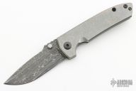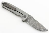 This Project VECP by Les George features a Damascus blade and a stonewashed titanium frame with matching tip up clip. Hinderer lock bar stabilizer. Phosphorus bronze washers. Smooth action. Nice blade seating, detent and lockup. Comes with a zippered case. New from maker at the 2023 Blade Show.