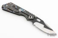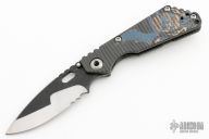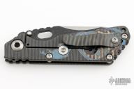 This MSC SNG framelock folder features a nightmare ground partially serrated blade with black textured flats, thumbhole and notched thumbrest. The handle has a flamed titanium frame with matching tip up clip. Has the batwing logo laser engraved on the frame. Nice lockup, detent and blade seating. New condition.
