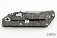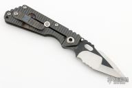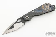 This MSC SNG framelock folder features a nightmare ground partially serrated blade with black textured flats, thumbhole and notched thumbrest. The handle has a flamed titanium frame with matching tip up clip. Has the batwing logo laser engraved on the frame. Nice lockup, detent and blade seating. New condition.