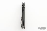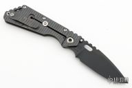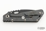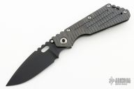 This Mick Strider Performance Series SMF framelock folder features a black finished spear point blade with thumbhole and notched thumbrest. The handle has a flamed titanium frame with titanium clip, tip up carry. Jimping on blade spine. Includes Hinderer "Lock Bar Stabilizer" for maximum reverse lock retention. Nice detent, lockup and blade seating. New from maker!