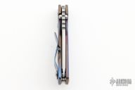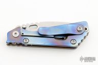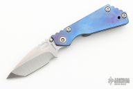 This PT by Mick Strider features a stonewashed tanto blade with notched thumbrest and thumbhole. The handle has an anodized and stonewash titanium frame with matching tip up clip. New from maker!