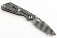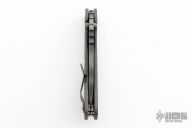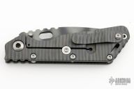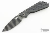 This Mick Strider Performance Series SMF framelock folder features a black finished spear point blade with thumbhole and notched thumbrest. The handle has a flamed titanium frame with titanium clip, tip up carry. Jimping on blade spine. Includes Hinderer "Lock Bar Stabilizer" for maximum reverse lock retention. Nice detent, lockup and blade seating. New from maker!