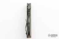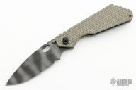 This SMF framelock folder by Mick Strider features a tiger striped drop point blade and a dimple pattern bronze aluminum and flamed titanium frame and tip up titanium clip. Includes a "Lock Bar Stabilizer" for maximum reverse lock retention. Nice detent, lockup and blade seating. New from maker!