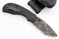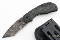 This RCC Linerlock by Strider features a digicam tanto blade with notched thumbrest and dual thumbstuds. The handle has double gunner grip black G-10 scales, titanium liner and a flamed tip up titanium clip. Nice detent, lockup and blade seating. Excellent condition. Comes with a custom kydex sheath with TekLok.