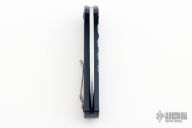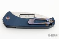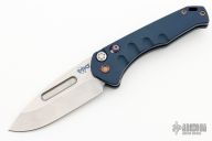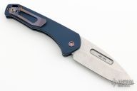 The Praetorian Swift Auto by Medford Knives features a tumbled drop point tanto blade with large fullers. The handle is composed of anodized and tumbled aluminum and features a lanyard hole in the pommel and a anodized titanium tip up pocket. Flamed hardware. Has some scuffs, scratches, and a few dings. Good user condition.