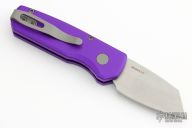The Runt 5 by Pro-Tech Knives features a tumbled reverse tanto style blade. The handle features a smooth purple aluminum handle with a bead blasted tip up stainless steel pocket clip. Comes with original box. New from Maker!
