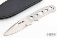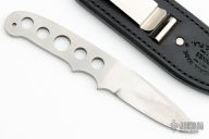 The Triathlete is a non-catalog knife by Randall Made Knives. It has a satin finished blade with notched thumbrest, .190" blade stock and .903" blade depth, integral construction. Notched thumbrest. Bead blast handle. Comes with black leather sheath with belt clip. Excellent condition.