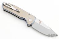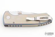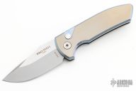 This collaboration between Protech and Les George features a two-tone blade with notched thumbrest. The handle has a two-tone titanium frame with a stainless steel tip up clip, has a pearl inlay in the push button. Comes with original box and papers. #002.  New from Maker!