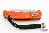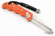This Spyderco Autonomy features a satin finished fully serrated blade, H-1 Blade steel. The handle has orange G-10 scales, stainless steel liners, and a tip up reversible clip. Has been used and carried, has scuffs/scratches, otherwise good user condition. Comes with Spyderco Bead. Not a factory second.