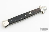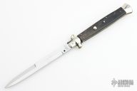 Angelo Campolin Sr. was born in 1923 in Maniago, Italy. He worked on perfecting his knife making skills before WWII and at this time made his first switchblades. After the war, in 1947 he started his company and made 30 stilettos with the marking “Angelo Campolin”. In the 1970’s Angelo’s son Gianni started to work in the company and they were specializing in folding hunting knives and also manual folding stilettos for the Robert Klaas company in Solingen Germany with their Kissing Cranes mark. In 2002 American switchblade collectors Dan Fuller, Brad West, and Tim Zinser were visiting Maniago and enjoying a few glasses of wine in a bar with Angelo Jr. and Gianni. The discussion was about a new name for some knife projects they wanted to pursue. It was Brad West that suggested the tang stamp should be AGA, for Angelo, Gianni, Angelo, thus representing three generations in the knife making business. The Campolins liked it and it stuck. In the beginning it was just a few items, but grew to the point where now there are 12 models and different scale options. The goal has been to offer quality switchblades using the old methods and traditions. Being a collector himself, Angelo Jr. knows what others like. The company headquarters has moved to Austria with production still in the original Maniago shop, as well as the others in Maniago that produce the knives for A.G.A. Campolin.