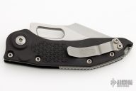 This Stitch Auto by Microtech Knives features a stonewashed blade and false top edge, notched thumb and finger rests. The handle has a black anodized and milled aluminum handle with a bead blasted titanium backspacer and a bead blasted stainless steel clip, tip up carry, lanyard hole at the butt. Comes with original box. S/N of 7987 and dated 09/2021. Excellent Condition.