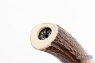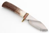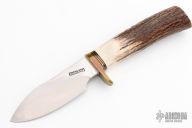 This A.G. Russell Special by Randall Made Knives has a satin finished blade with notched thumbrest, .165" blade stock and 1.229" blade depth, hidden tang construction. The handle has a stag grip with brass guard and a compass in the butt, black and brass spacers. Numbered 315 on blade spine. Excellent condition. Coems with a zippered case.
