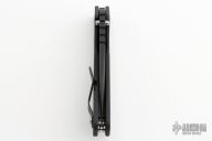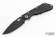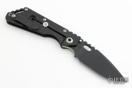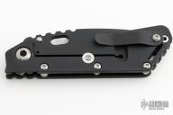 This Mick Strider Performance Series SMF framelock folder features a spear point black blade with thumbhole and notched thumbrest. The handle has a black titanium frame with titanium clip, tip up carry. Jimping on blade spine. Includes Hinderer "Lock Bar Stabilizer" for maximum reverse lock retention. Nice detent, lockup and blade seating. New from maker!
