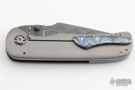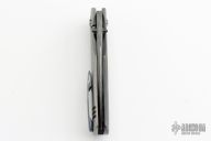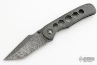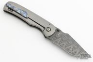 This Jolt One-Off from Jonas Iglesias features a Damascus (Norris Composite Ladder) blade with dual thumbstuds. The handle has an eggshell finish Zirconium scale, custom pivot, floating DarkTi backspacer and tip up clip with hidden screws. Rides on bearings, nice detent, lockup and blade seating. Excellent condition. Comes with a zippered case and COA dated 4/21/17. Excellent condition.