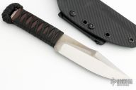 This FT 1.0 By Jon Hayes features a clip point blade with false top edge, .207" blade stock and 1.40" blade depth, hidden tang construction. The handle has leather under a shibari wrapped handle. Has a kydex sheath, and COA/Tag. New from Maker at the 2023 Blade Show!