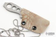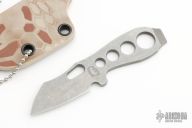 This Neck Knife by Jason Stout and Jeremy Horton features a chisel ground blade with .124" blade stock and .805" blade depth. Comes with a kydex sheath. New from maker at the 2023 Blade Show.