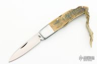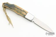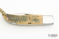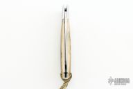This Lannys Clip Lockback by David Taber features a hand rub satin finished blade with nail nick. The handle has stainless steel bolsters, mammoth ivory covers, stainless steel liners and back spring. Comes with a leather slip sheath and COA May 2023. New from maker at the 2023 Blade Show.