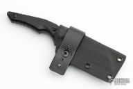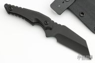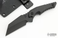 This BFF by Scorpion 6 Knives features a black wharncliffe blade with notched thumbramp, .190" blade stock and 1.249" blade depth, full tang construction. The handle has anodize finish black aluminum scales. Comes with a kydex sheath and COA. Has some scuffs, great condition otherwise.