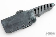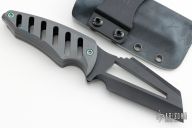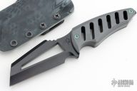 This MF'R by Scorpion 6 Knives features a black wharncliffe blade with notched thumbramp, .290" blade stock and 1.6" blade depth, full tang construction. The handle has anodize finish gray aluminum scales. Comes with a kydex sheath. Has some scuffs, great condition otherwise.