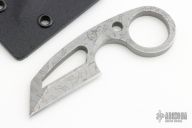 This Frelser by Scorpion 6 Knives features a wharncliffe blade, .221" blade stock and 1.138" blade depth, full tang construction. .975" finger hole. Laser engraved flamingo pattern. Comes with a kydex sheath and COA. Has some scuffs, great condition otherwise.