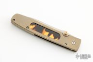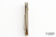 This Talon by Bob Terzuola features a bead blasted blade with notched thumbrest and a single gold thumbstud. The handle has a bead blasted and anodized titanium frame with tortoise shell inlay, anodized titanium backspacer and tip up clip. Nice detent, lock up and blade seating. Excellent condition.  Comes with a velcro case.
