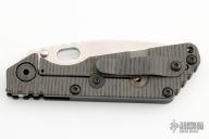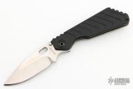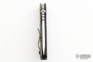 This SNG framelock folder by Mick Strider features a drop point blade and a black aluminum and flamed titanium frame and tip up titanium clip. Includes Hinderer "Lock Bar Stabilizer" for maximum reverse lock retention. Nice detent, lockup and blade seating. Has a few light scuffs, has been resharpened, otherwise good condition.