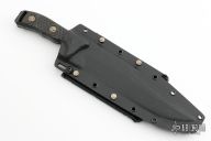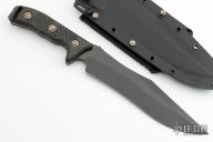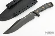This Arbiter by Microtech features a two-tone DLC recurve blade with a notched thumbrest and sharpened top edge. The handle has carbon fiber scales with bronzed hardware, .213" blade thickness and 1.879" blade depth, full tang construction. But has a lanyard hole. Comes with kydex sheath with MOLLE locks. Comes with original box and papers. Serial number 090 and dated 05/2023. New condition.