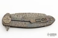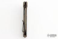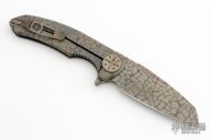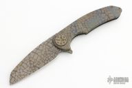 This Large F3 by Curtiss Knives features a bead blast finish blade with notched thumbrest and flipper. The handle has an anodized and bead blast finish titanium frame with a matching tip up titanium clip. Blasted titanium hardware, notched backspacer. Rides on bearings, nice detent and lockup. Comes with original zippered case. Excellent condition.