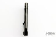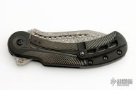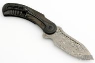 The Field Marshall from Steelcraft Knives features a Grosserosen Damasteel blade, notched thumbrest, fullers and a flipper. The handle has an anodized and milled titanium frame with a matching backspacer and tip up clip with ceramic ball and hidden screws. Ceramic IKBS. Nice detent, lockup and blade seating.  Includes the original box and papers. Excellent Condition.