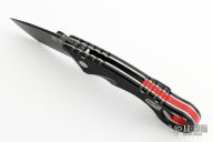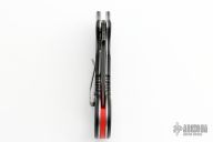 It features a CTS-XHP tanto blade, "Emerson Wave" feature for ease of opening, and a reversible pocket clip for left hand carry with black and red G10 scales provide for a sure grip.