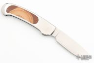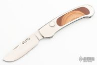 "I was born in North Dakota, but spent most of my youth in Illinois. I went west to attend college; and after graduating and a stint in the army, I returned to Utah State University to pursue a Master’s degree in biology. It was there in 1970 I began making knives as a hobby. It was difficult to get started back then, as there were no books on knifemaking and very few makers around to get advice from. I teamed up with Steve Mullin and we went north to see Bernard Sparks in Dingle, Idaho. Bernie was one of the original custom knifemakers and a founding member of the Guild. He pointed us in the right direction, showed us what a belt sander was, and we went back to Logan to construct one. For the next few years we made knives either full or part time depending on what other employment was available. In 1976 Steve and I bought adjoining pieces of land in North Idaho, built log homes on them and became professional knifemakers. Our first shop was built of logs. We eventually outgrew it and in 1983 I sold my half to Steve and built a shop of my own nearby where I work to this day."