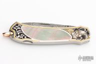 Interframe Lockback - Damascus and Engraved w/ Black Lip Pearl