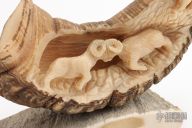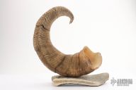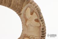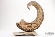 Hand Carved Big Horn Sheep Horn with antler bass. Has carvings of big horn sheep and an eagle. Excellent condition.