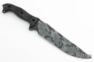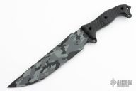 This Custom Shop Nuclear Fusion Force 9 by Busse features an Urban Multicam finished blade with sharpened top edge, .214" blade stock and 2.179" blade depth, full tang construction. The handle has black g-10 scales, extended tang with lanyard holes. New from Maker! Arizona Custom Knives Exclusive